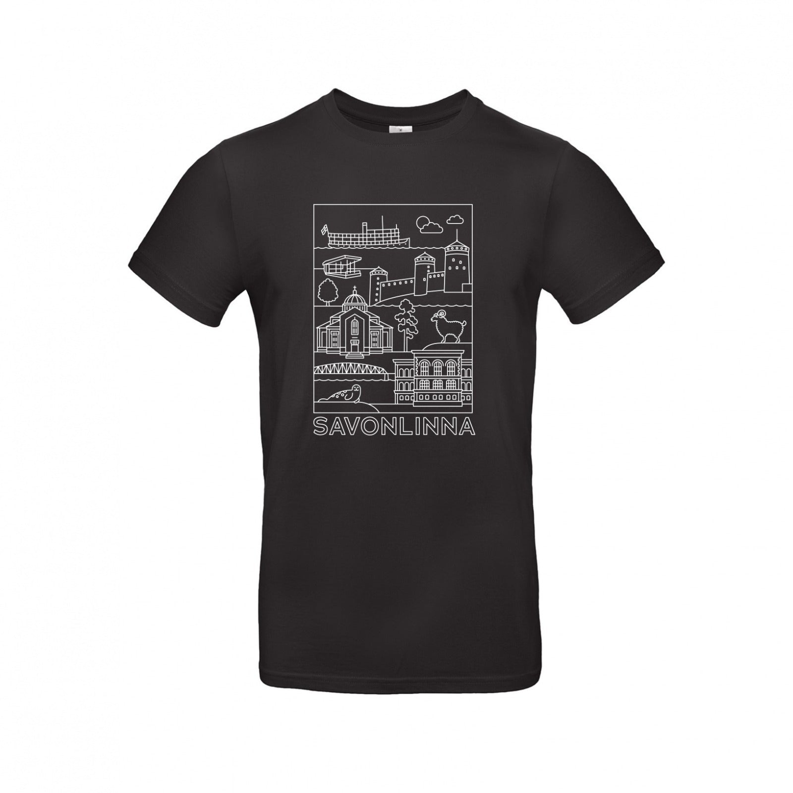 Savonlinna t-paita! T-paidassa on kuvitettuna kaikki Savonlinnan suosituimmat nähtävyydet: